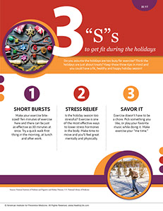 Do you assume the holidays are too busy for exercise? Think the holidays are just about treats? Keep these three tips in mind and you could have a fit, healthy and happy holiday season!