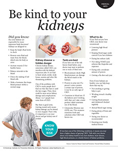 But there is good news. Getting treated early means kidney damage can be slowed or even stopped. That’s why it’s important to see your doctor and get kidney tests if needed.