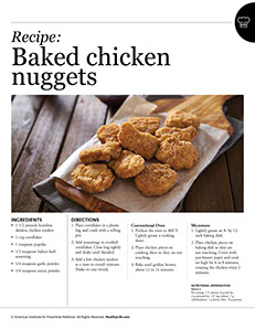 Per serving: 175 calories, 8 g total fat, 2 g saturated fat, 127 mg sodium, 7 g carbohydrates, 1 g dietary fiber, 18 g protein.