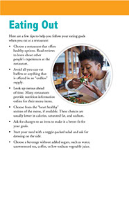 Here are a few tips to help you follow your eating goals when you eat at a restaurant: