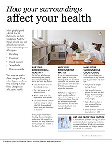 Most people spend a lot of time in their home or their workplace. And the things around you can affect how you feel. Your surroundings can affect your: