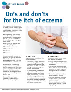 * Use products that are eczema-friendly. Soaps and lotions without fragrance, dyes or common irritants are best. Products with the National Eczema Association seal on them are a good place to start.