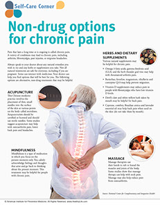 This Chinese medicine practice involves the placement of thin, small needles into the surface of the skin at various points on the body called meridians. Acupuncturists should be certified or licensed and should use sterile needles. Some studies suggest acupuncture may help with osteoarthritis pain, lower back pain and headaches.