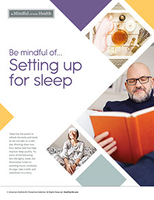 * If you wake up and can’t get back to sleep or can’t fall asleep, after 30 minutes, get out of bed. Read a relaxing book or sit quietly in the dark. In about 20 minutes, go back to bed. Do this as many times as needed.