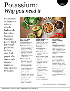 Potassium is an important mineral that the body needs for various functions. But many people don’t get enough potassium in their diet. And people who take certain diuretic medicines may have low levels, too.