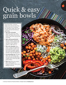 Grain bowls offer a nutritious, simple meal to fuel your day. They are also a great way to maximize your daily plant intake. Here’s how to make each bowl both delicious and healthy: