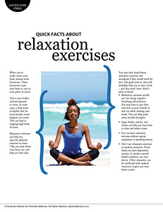 Relaxation exercises can help you stop this physical response to stress. They can slow down your heart rate and help you feel calm.