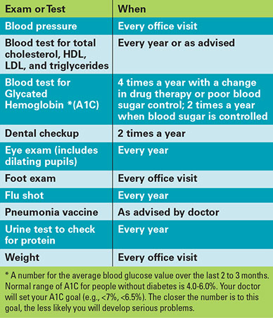 A screening test can detect diabetes early. Early treatment may reduce other health problems related to diabetes.