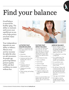 Good balance is essential for healthy aging. The ability to maintain and recover your equilibrium as you move helps protect you from injury and falls.