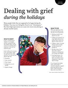 If you feel grief this holiday season, ask for help. A counselor, therapist or support group may help you feel better. If these things don’t help, talk to your doctor.