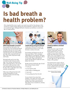 Your breath may be trying to tell you something. See your dentist and doctor if you’re concerned about bad breath so you can find out the cause and get treatment if needed.