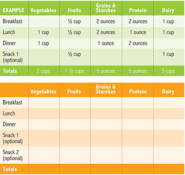 The nutrition guidelines in HealthyLife® Weigh and this menu planning guide are based on USDA’s MyPlate and the 2015-2020 Dietary Guidelines for Americans. MyPlate helps to identify how much food makes up a healthy and balanced meal by showing how different food groups take up space on a plate: